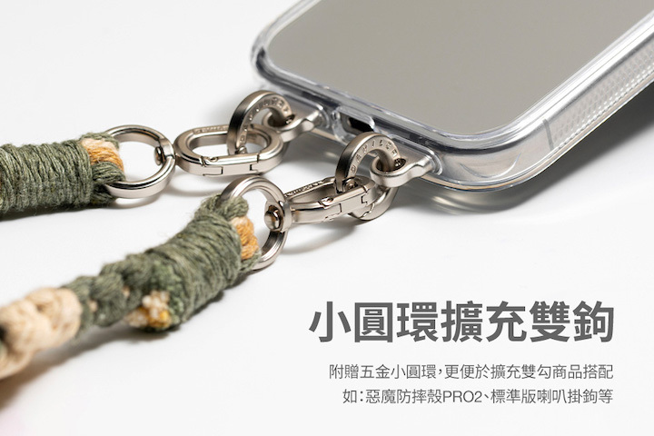 ✦ 小圓環擴充雙鉤,附贈五金小圓環,便利於擴充雙鉤商品搭配,如:惡魔防摔殼PRO2、標準版喇叭掛鉤等