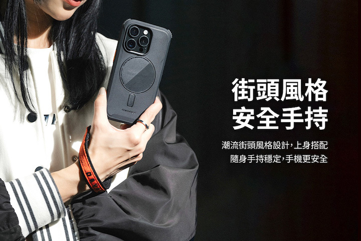 ✦ 潮流街頭風格設計,上身搭配隨身手持穩定,手機更安全