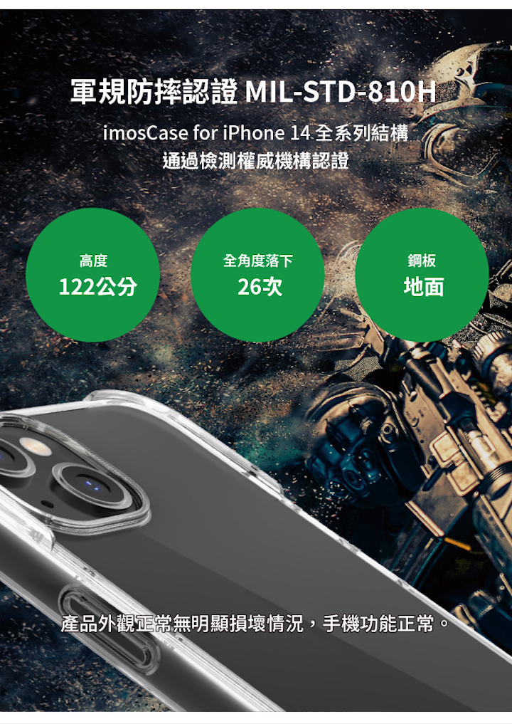通過軍規落摔耐用殼(48inched 122cm高度共測試26個不同接觸點)MIL-STD-810H Drop Method 516.6