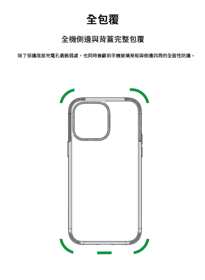 ● 側邊與背蓋全包覆,完美防護手機