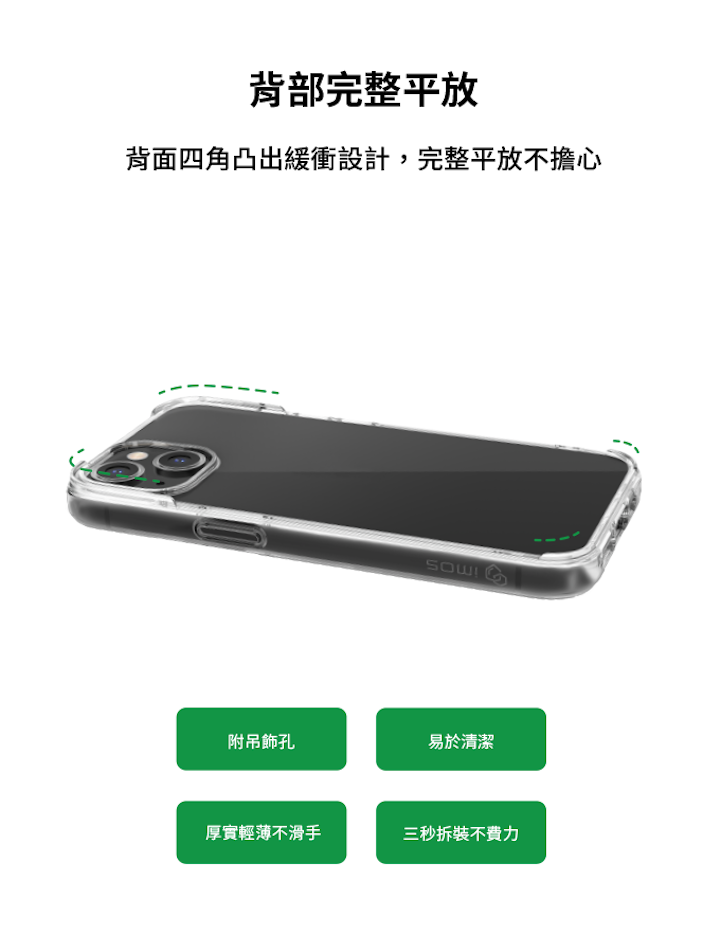 ● 置於桌上imosCase背蓋不會直接接觸,背蓋四角設計有凸出約1mm保護