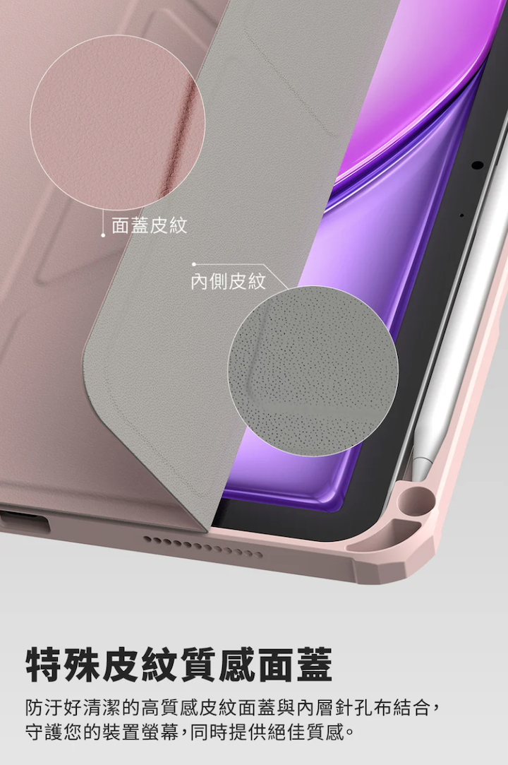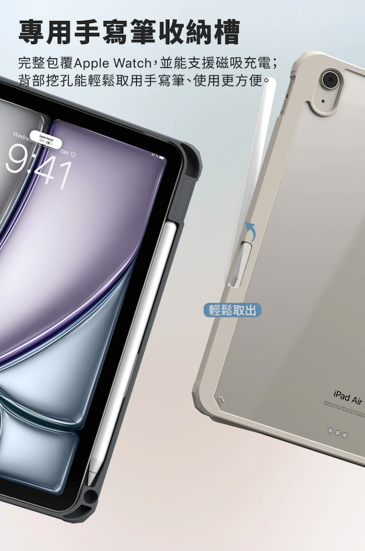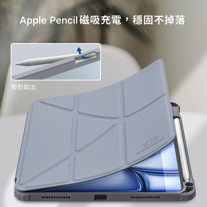 ● 筆槽設計能完整包覆Apple pencil,支援磁吸充電。